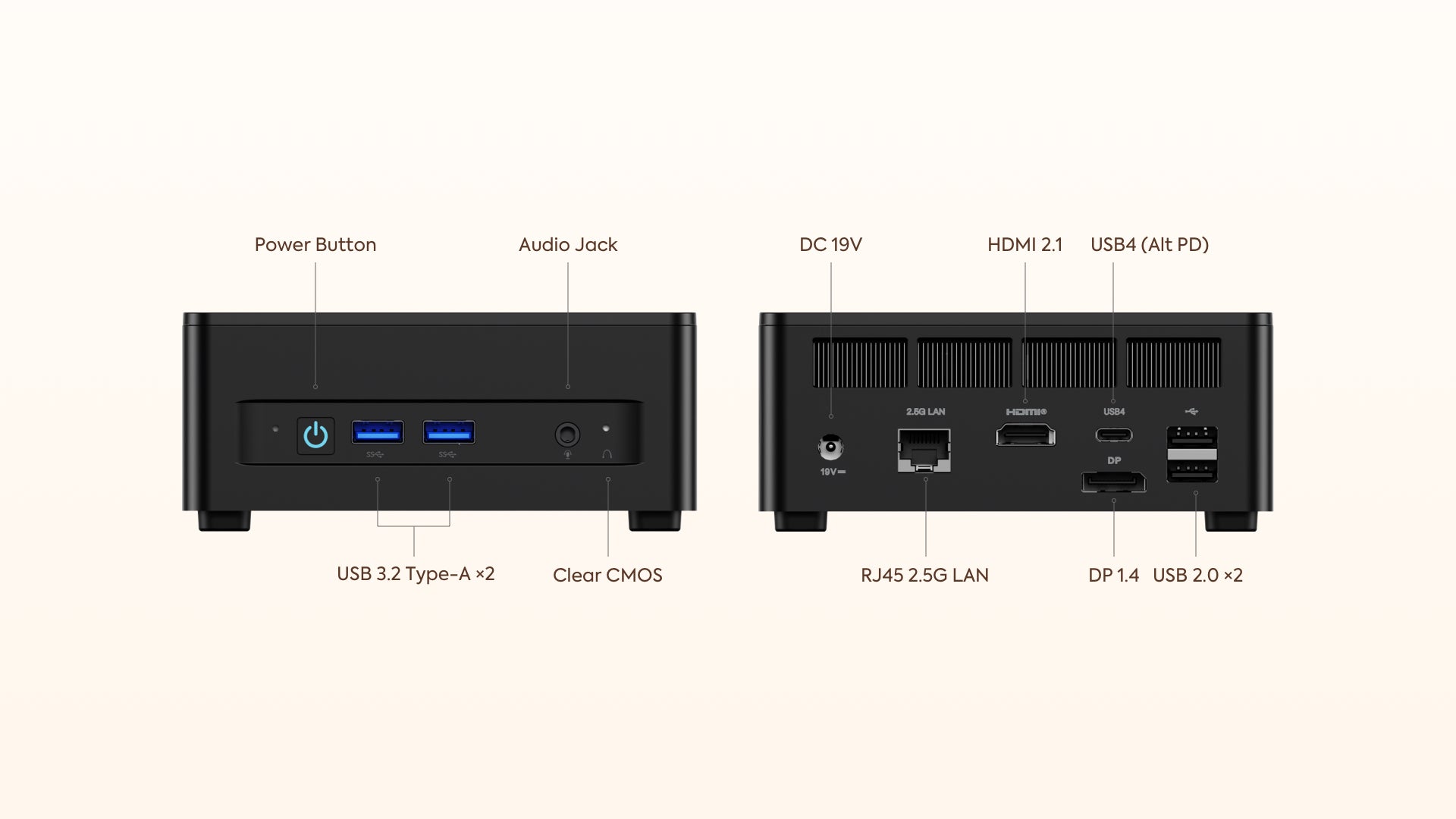 - Memory: DDR5 Dual channel (SODIMM Slots×2, Up to 5600MHz, Max 96GB)