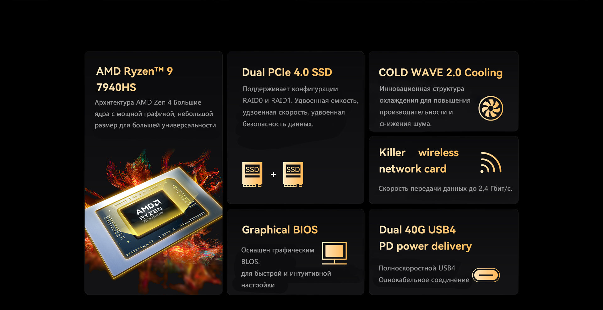 Двойной NVMe PCIe4.0 и двойной USB4 40 Гбит/с