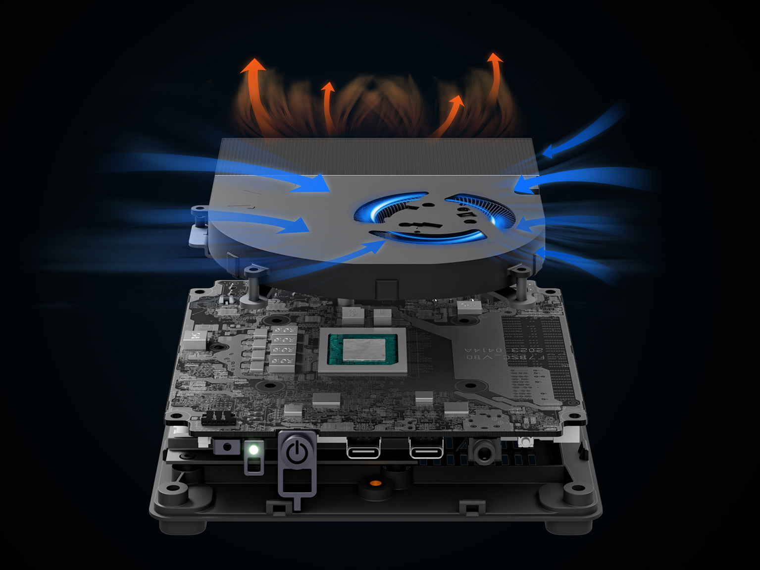 Инновационная система охлаждения с жидкометаллической теплопроводностью для улучшения эффективности охлаждения и снижения уровня шума для компонентов процессора, памяти и твердотельного накопителя.